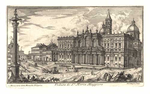 "Veduta di S Maria Maggiore"View of S. Marria Maggiore in Rome. From 'Nuova Raccolta delle piu' belle vedute di Roma'. Etching, Rome 1761, 15,6 x 26,5 cm.