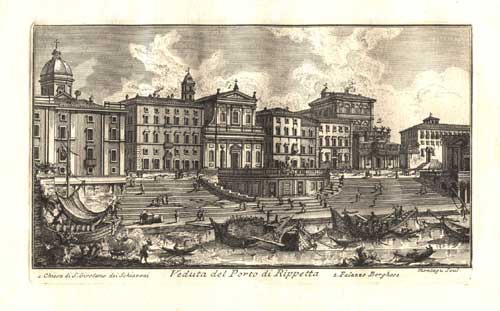"Veduta del Porto di Rippetta"View of the smaller harbour Porto di Ripetta in Rome. From 'Nuova Raccolta delle piu' belle vedute di Roma'. Etching, Rome 1761, 15,5 x 26,2 cm.