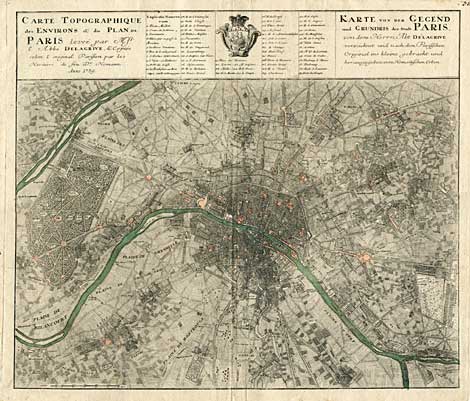 "Carte Topographique des Environs & du Plan de Paris" Stadtplan von Paris altkol. Kupferstich Nürnberg 1739(d) 53 x 61 cm