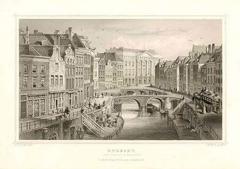 "Utrecht. Oude Gracht & Stadhuis"Teilansicht von Utrecht.Stahlstich von Kurz nach Cooke,bei Lange, Darmstadt um 1850/60,12,5 x 20,5 cm.