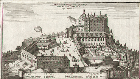 Ansicht von Schloss Ambras, mit Erläuterungen