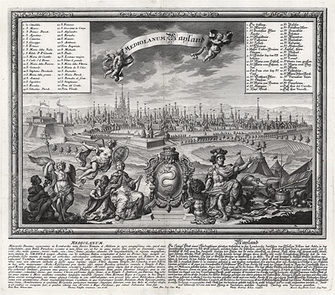 Stadt Mailand, umgeben von einer Rahmenbordüre.
