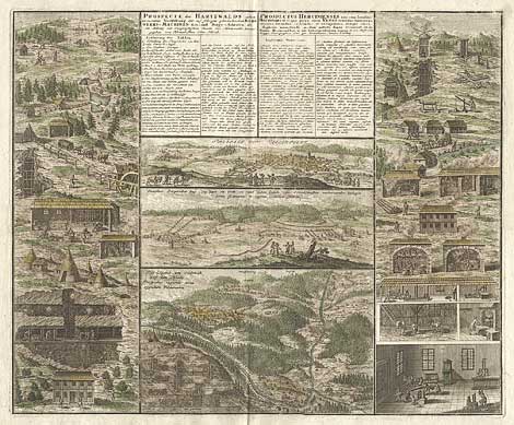 Bergwerkskarte der Harzes mit Ansichten von Clausthal,