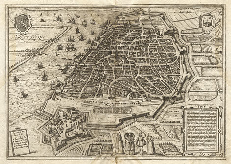 "Anverpia"Gesamtansicht a.V. von Antwerpen.Kst. von Braun & Hogenberg, aus 'Civitates Orbis Terrarum', Köln 1572 - 1618, Bd. I, 34 x 47,5 cm.