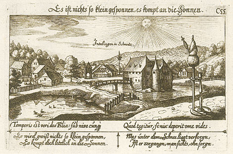 "Intzlingen"Ortsansicht, unten ein Gedicht.Kst. von D. Meisner bei Paul Fürst, Nürnberg 1637/38, 10 x 15 cm.