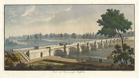"Ponte sul Ticino presso Boffalora"Ansicht der Steinbrücke.Altkol. Aquatinta von J. Scotti, Italien ca. 1820, 20, x 37.5 cm.