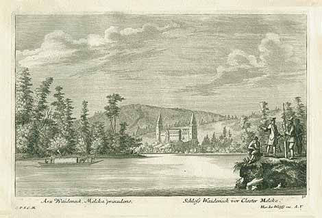 "Arx Waideneck, Melcka praecedens." - "Schloss Waideneck vor Closter