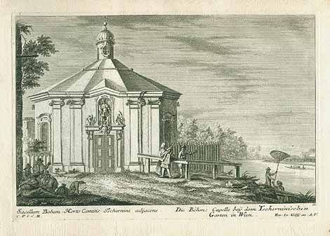 "Sacellum Bohem. Horto Comitis Tschernini adjacens." - "Die Böhm. Capelle bey dem Tscherninischen Garten in Wien."