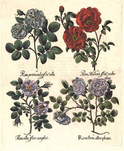 II. Rosa alba Weiße Rose mit einfachen Blüten "Rosa