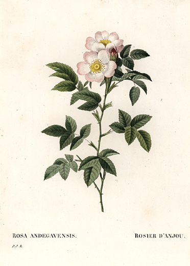Alte Sorte der Wildrosenart „Anjou-Rose“, deren Bestand sehr gefährdet ist.