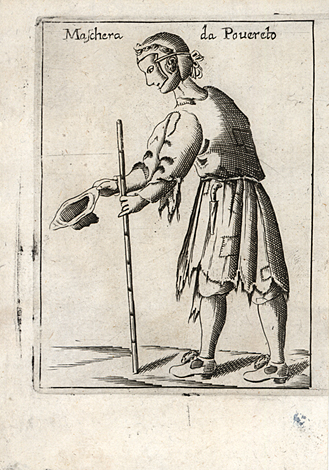 Radierung von Francesco Bertelli, aus: 'Il Carnevale Italiano Mascherato ...', Venedig 1642, 11,5 x 6 cm.
