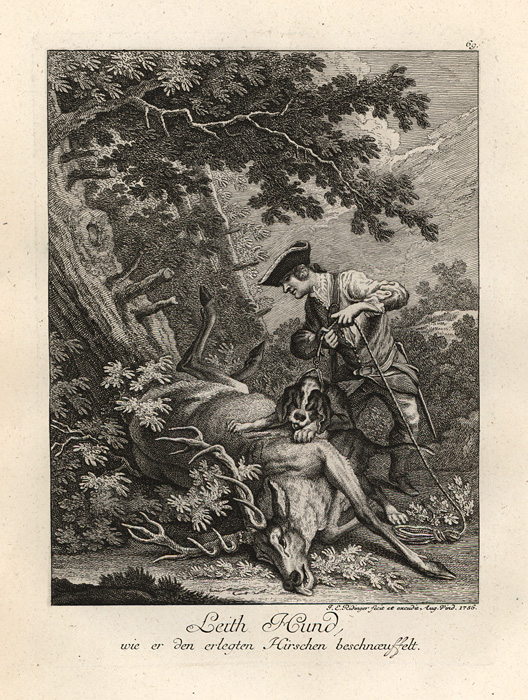 Johann Elias Ridinger (1698-1767) - Hirsch, Jäger und Hund