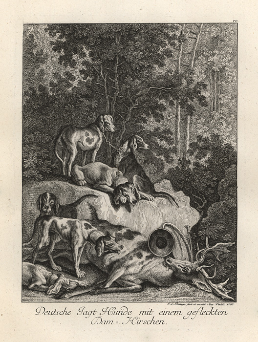 Johann Elias Ridinger (1698-1767) - Damhirsch und Jagdhunde