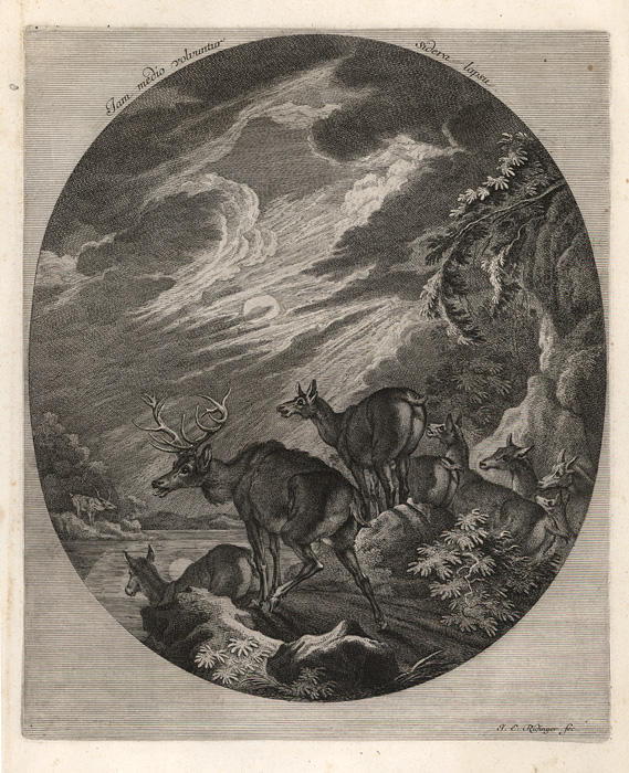 Johann Elias Ridinger (1698-1767) - Hirsche zu Mitternacht