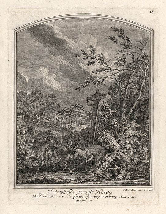 Johann Elias Ridinger (1698-1767) - Kämpfende Hirsche bei Neuburg