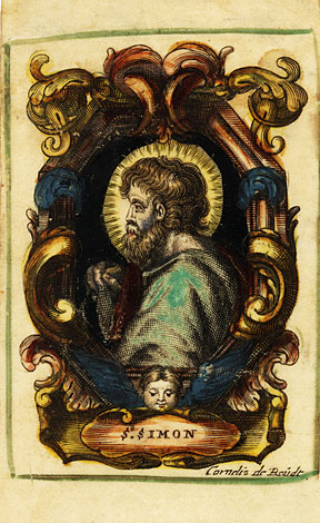 Porträt des heiligen Simon, umgeben von einem kunstvoll