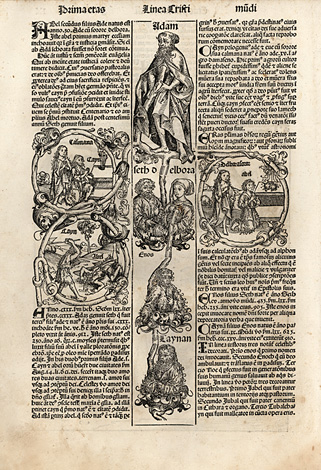 mit einem Holzschnitt („Adam und Eva mit ihren Söhnen