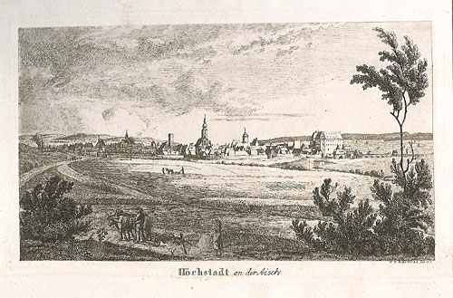 Kupferstichradierung von F.G. Rupprecht, 1819, 10,5 x 16,6 cm.