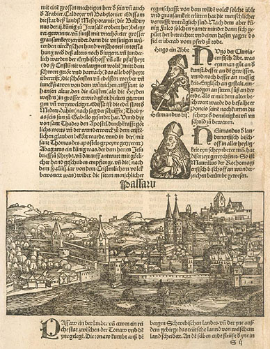 Gesamtansicht. Holzschnitt aus der Weltchronik von Schönsperger.