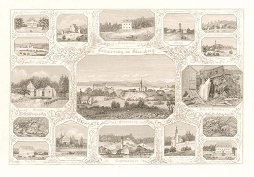 Souvenirblatt mit Starnberg, Mühltal, Gauting u.a.