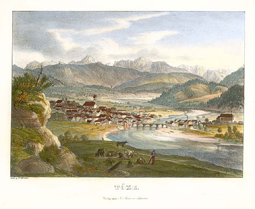 Kol. Lithographie von G. Kraus bei Fr. Sauer München 1837 13,5 x 17,5 cm