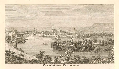 Hübsche Gesamtansicht über den Neckar vom Kahlenstein (Rosenstein) aus gesehen.