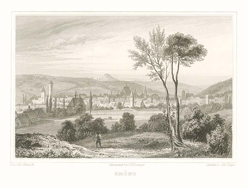 Stahlstich von J. Poppel nach E. Mauch Darmstadt ca. 1850 10 x 15 cm