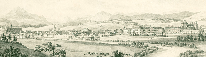 Residenz und St.-Mang-Kirche. Im Hintergrund