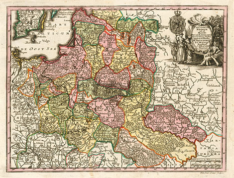 Map of the kingdom of Poland, with a decorative title cartouche.