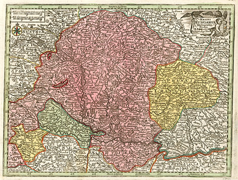 Karte des Königreichs Ungarn mit dem Fürstentum Transylvanien.