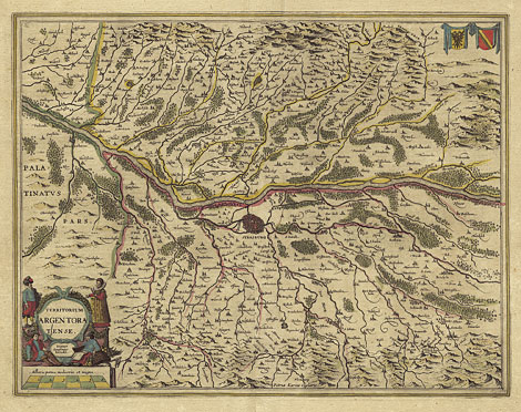 "Territorium Argentoratense"Karte des Gebiets um Straßburg mit einem Teil des Elsass.Altkol. Kst. nach P. Kaerius bei J. Janssonius, Amsterdam 1630, 38,5 x 49,4 cm.