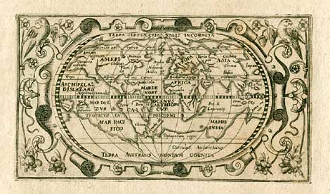 Buchblatt mit einer Weltkarte, 2. Titelblatt der großen Reisen, Teil VIII.