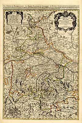 "Le Circle de Baviere" Map of Bavaria, from the 'Imperial Atlas' of Louis XIV, printed from 2 plates. Original outline colour. Copper engr., Amsterdam c1700, 84,5 x 56,7 cm. Very good impression and condition.