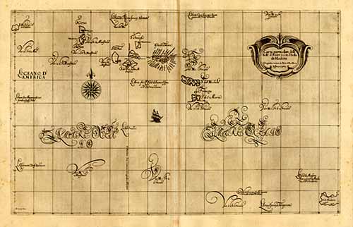 Teilkarte des Atlantiks mit den Azoren und Madeira, von 2 Platten gedruckt, gestochen von Antonio Francesco Lucini.