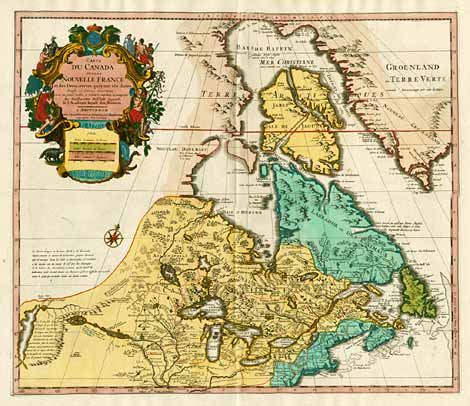Karte des nordöstlichen Teils Kanadas von den Großen Seen bis zur Baffinbai, mit einer dekorativen Kartusche.