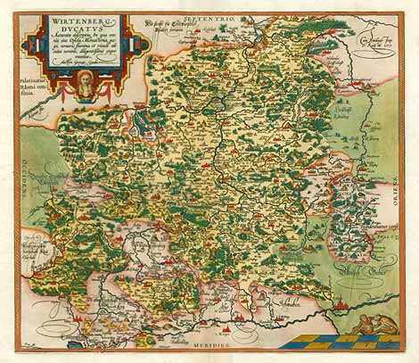 Karte des Herzogtums Württemberg nach Georg Gadner (15222 - 1605, Landvermesser in Schwaben).