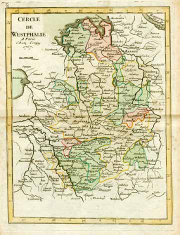 "Cercle de Westphale" Karte von Westfalen. Altkol. Kst., Paris 1767-73, 27,4 x 21 cm. Etwas fleckig, sonst sehr gut erhalten.