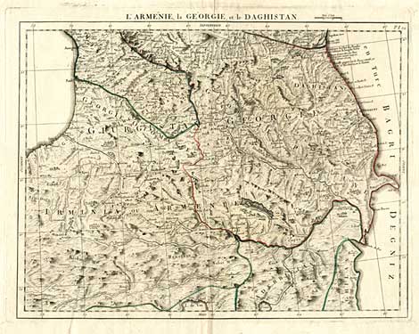 "L' Arménie, la Georgie, et la Daghistan"Karte von Armenien und angrenzender Länder. Kst., Paris ca. 1780 / 90,44,5 x 57 cm.