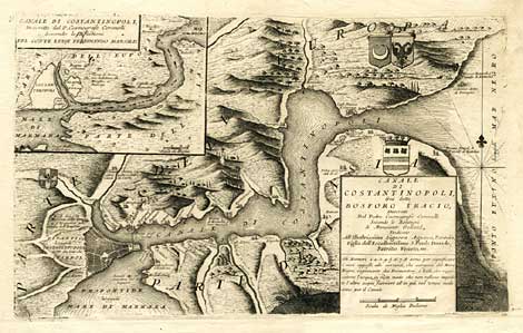 "Canale di Constantinopoli gia detto Bosforo Tracio ..."Teilkarte des Bosporus mit einer kleineren Übersichtskarte. Kst., Venedig ca. 1690,26,5 x 43 cm.