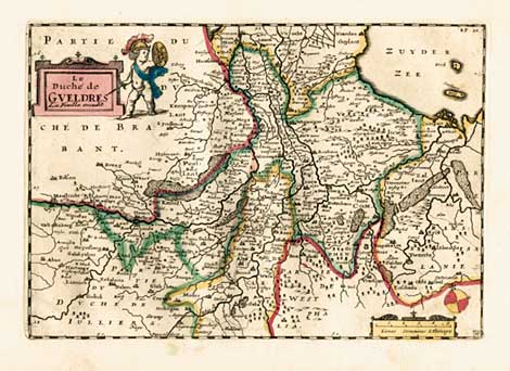"Le Duché de Gueldres"Karte des Herzogtums Geldern. Altkol. Kst., Amsterdam ca. 1720,15,5 x 22,3 cm.