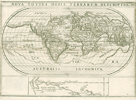 zeigt. Die große Weltkarte von Spilbergen mit den