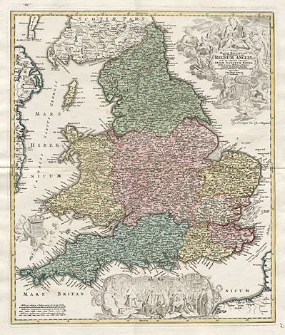 Map of England with decorative cartouches