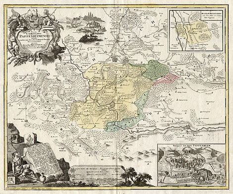 view of Pappenheim at lower right and an inset map