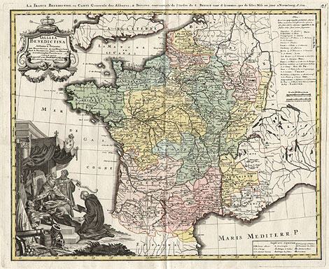 | Karte von Frankreich mit den Provinzen des Benediktinerordens.