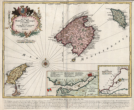 Karte der Balearen mit den Inseln Mallorca, Menorca,