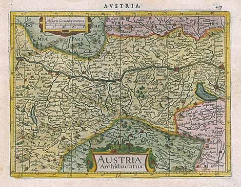 "Austria Archiducatus"Karte mit Ober- und Niederösterreich,aus einem kleinen 'Mercatoratlas',kol. Kst., Amsterdam ca. 1620, 14,5 x 19 cm.