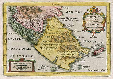 "Freti Magellanici ..."Karte von Feuerland,aus einem kleinen 'Mercatoratlas',kol. Kst., Amsterdam ca. 1620,13 x 19 cm.