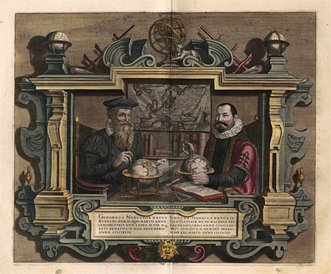 und Jodocus Hondius (1563-1612) vor Mercator's Wandkarte